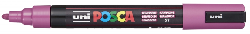 Uni Posca marcador de pintura base al agua -PC-5M FRAMBUESA 1,8-2,5mm Características: -Punta de poliéster (forma de bala) -Ancho de trazo de 1,8 -2,5 mm -Cuerpo de plástico -Marcador de pintura no permanente. Tinta pigmentada base al agua. Pinta sobre cualquier superficie y es muy resistente a la luz, es inodoro, las manchas se pueden lavar con agua, desapareciendo inmediatamente, ideal para cartelería, decoración, escaparatismo, posters, etc. -NO ES TÓXICO