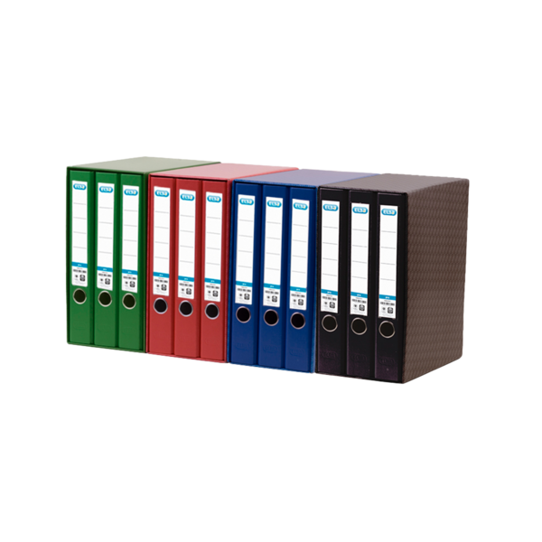 El Elba Archivador Palanca Rado Top A4 tiene un lomo de 50mm y está forrado en plástico en su exterior. En su interior, cuenta con papel negro para una mejor organización de documentos.