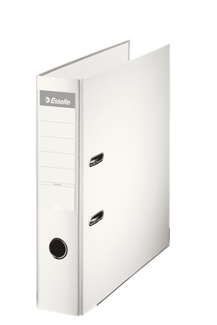 Archivador de palanca con tapa de PP y forrado en el interior con papel blanco brillante.