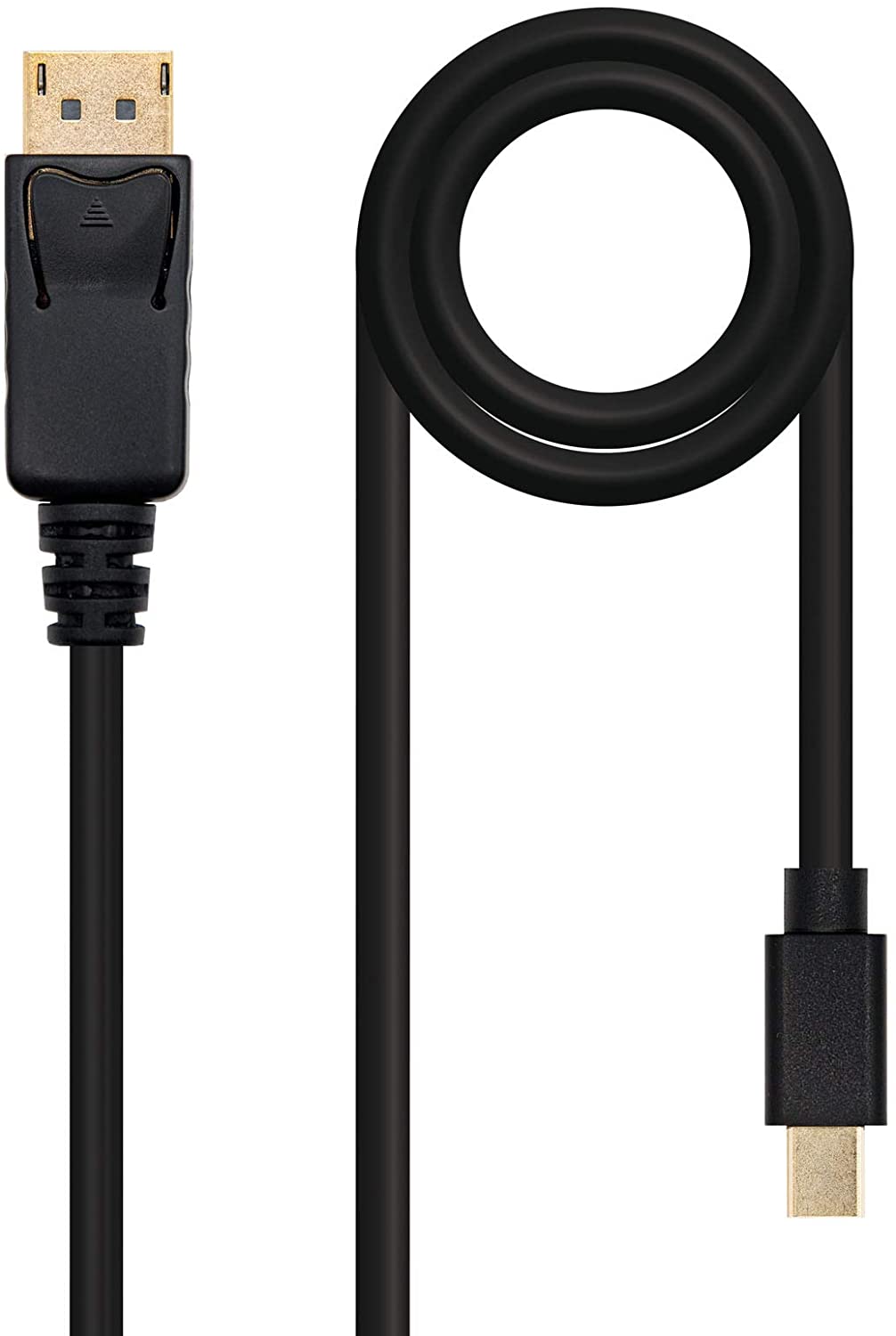 Cable DisplayPort con conector DP macho(20 Pines) en un extremo y mini DP(20 Pines) macho en el otro. Conectores de alta calidad con los pines blindados en oro. Múltiple apantallamiento formado por 128 hilos trenzados y lámina de aluminio para la máxima reducción de posibles interferencias. Fabricado con conductores de cobre (cobre OFC-Oxygen Free Copper- 99,99%) de alta calidad que garantiza la máxima calidad de transmisión. Es un cable perfecto que proporciona una imagen perfecta.