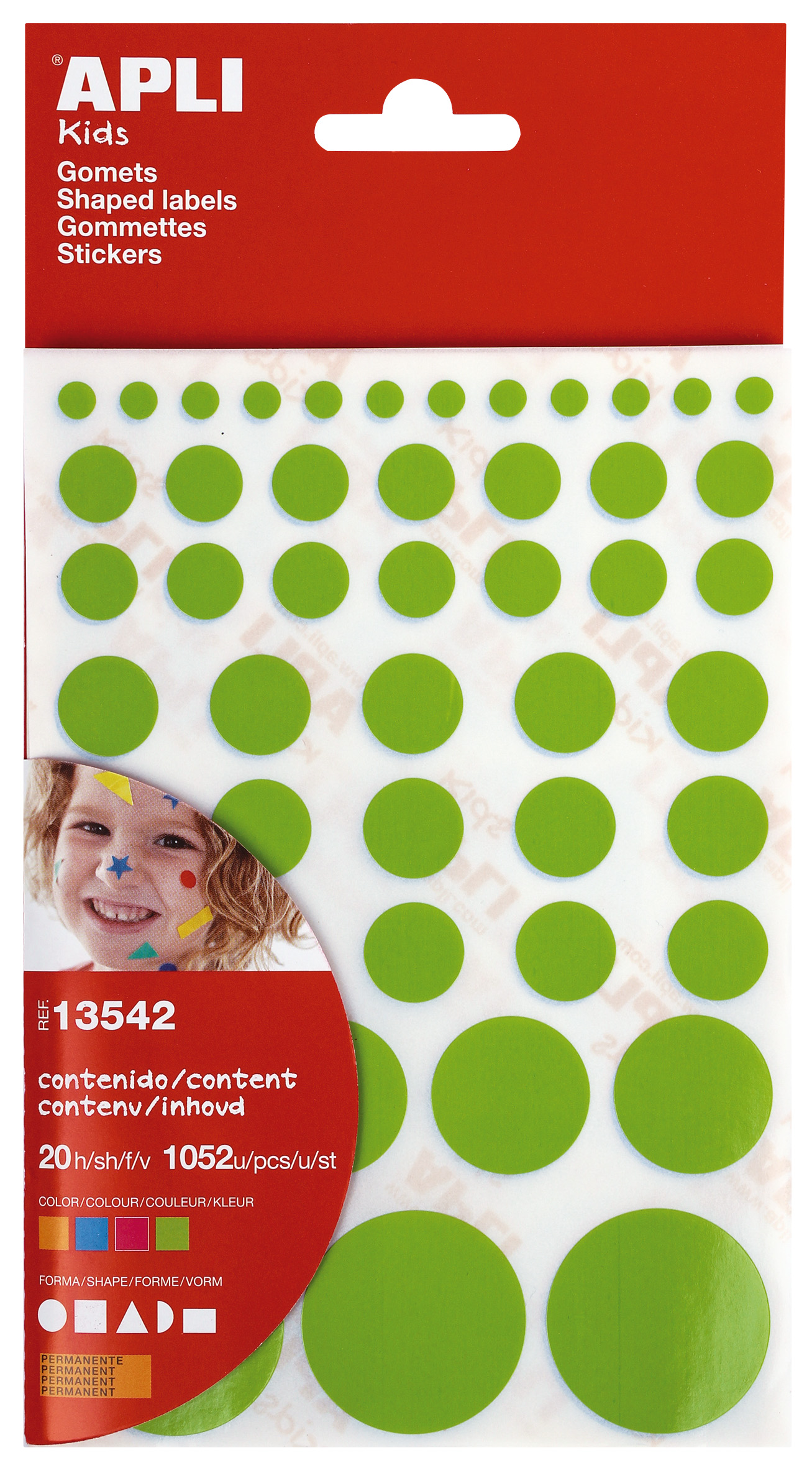 Apli Gomets Adhesivo Permanente - 1052 Gomets por Bolsa - Desarrollo de Habilidades Creativas y Psic