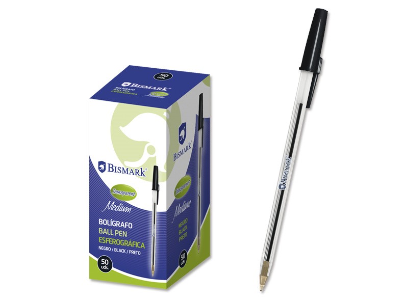 Bismark Boligrafo de Bola Características: -Color: Negro -Capuchón y tapón del color de la tinta. -Cuerpo transparente que permite ver el nivel de tinta.