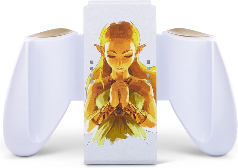 El agarre cómodo Joy-Con transforma los Joy-con izquierdo y derecho en un único mando cómodo para juegos de Nintendo Switch. Los agarres de caucho ergonómicos mantienen las palmas de tus manos felices y evitan los tirones en los dedos durante las sesiones de juego largas. Desliza cada mando Joy-Con por los rieles hasta que se oiga un clic, lo que permite que las luces indicadoras del jugador se muestren a través del panel central. Además, el agarre cómodo se aguanta solo, por lo que puedes colocarlo junto a la estación de carga de tu Nintendo Switch.