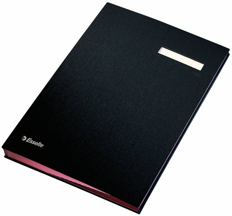 - Cubiertas forradas de plástico PP en color negro, que brindan resistencia y durabilidad al portafirmas.