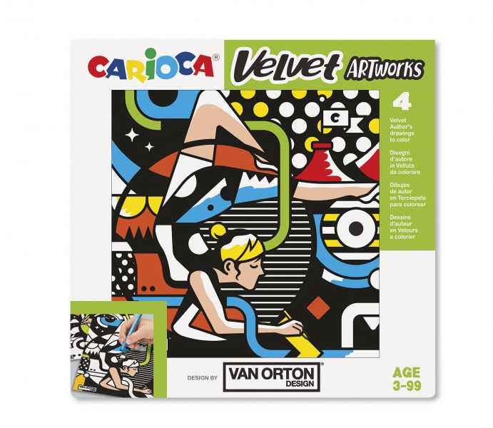Carioca Velvet Artworks Pack de 4 ilustraciones de terciopelo para colorear en colaboracion con Van Orton